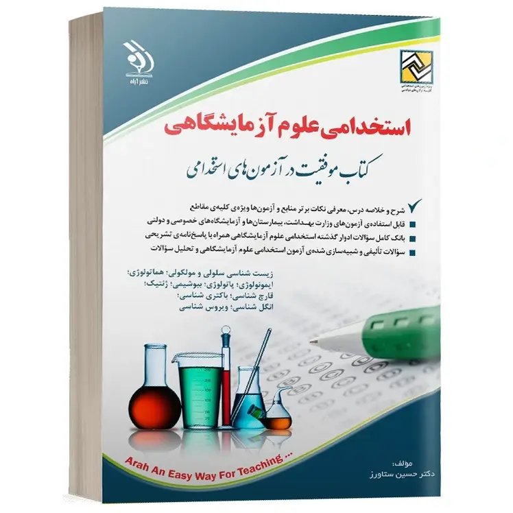 کتاب استخدامی علوم آزمایشگاهی انتشارات آراه بهطور کامل و جامع برای استفاده داوطلبین آزمون های استخدامی کلیه رشته های متقاضی آزمونهای استخدامی وزارت بهداشت و درمان و سازمان تأمین اجتماعی نگارش گردیده است.