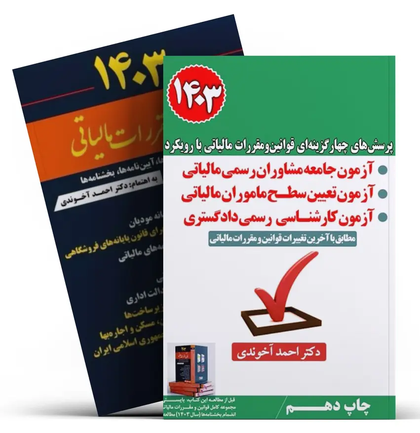 بسته دو جلدی سوالات آزمون های مالیاتی و مجموعه کامل قوانین و مقررات مالیاتی | آخوندیمعرفی بسته دو جلدی سوالات آزمون های مالیاتی